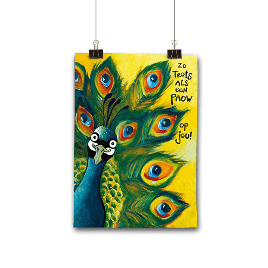 Wie houdt er nu niet van leuke post? De postkaart “Zo trots als een pauw op jou!” is perfect geschikt om iemand te laten weten dat je trots op ze bent. Deze kleurrijke postkaart op A6 formaat is gedrukt op 350 grams karton met een glanzende voorkant en beschrijfbare achterkant.