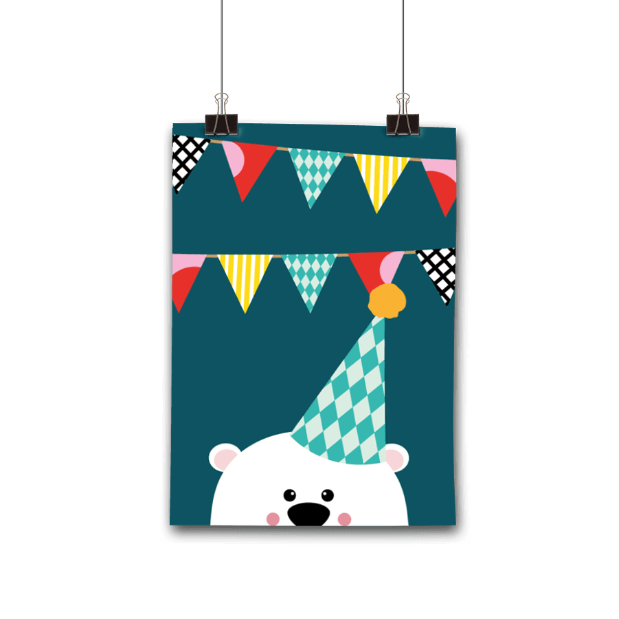 Postkaart “Vlaggetjes Beer” is geschikt om op te hangen, te geven bij een kadootje of te versturen. Maar ook om te gebruiken als uitnodiging voor een (kinder)feestje!